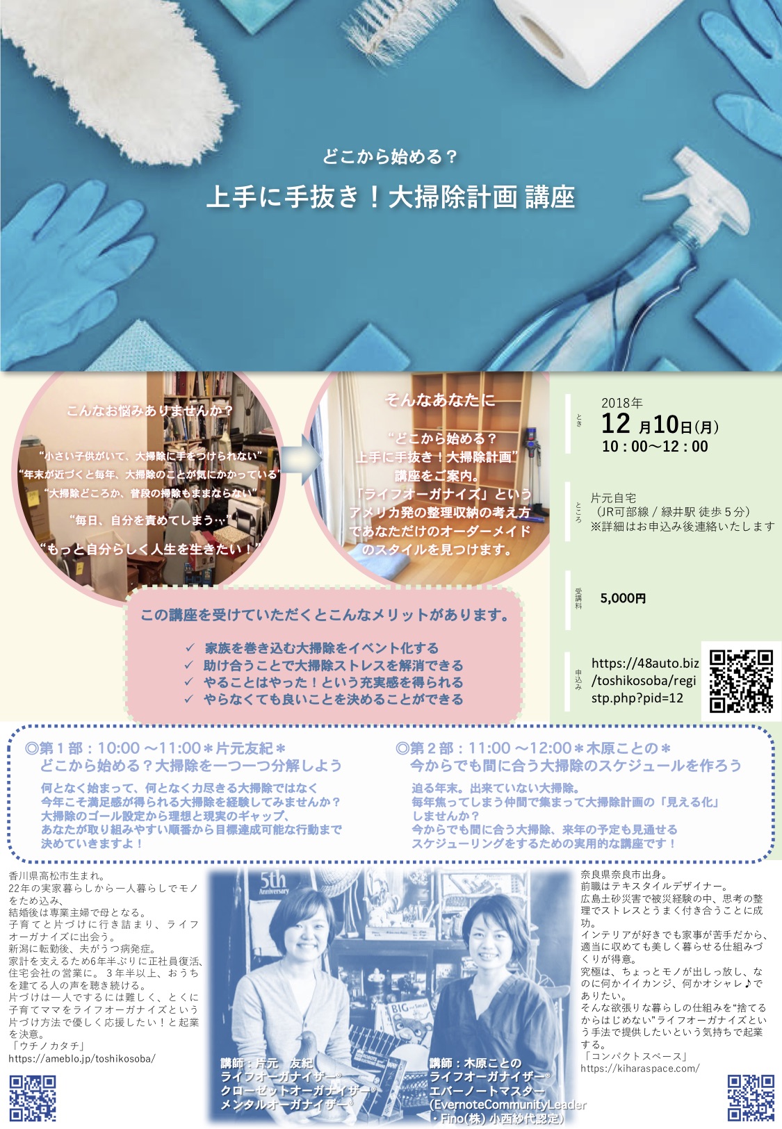 講座「どこから始める?上手に手抜き!大掃除計画」開催のお知らせ