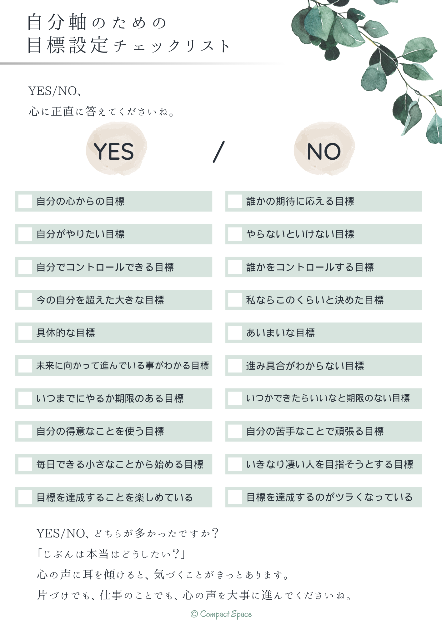 チェックをつけることで、自分が大切にしたいことが見えてきます。